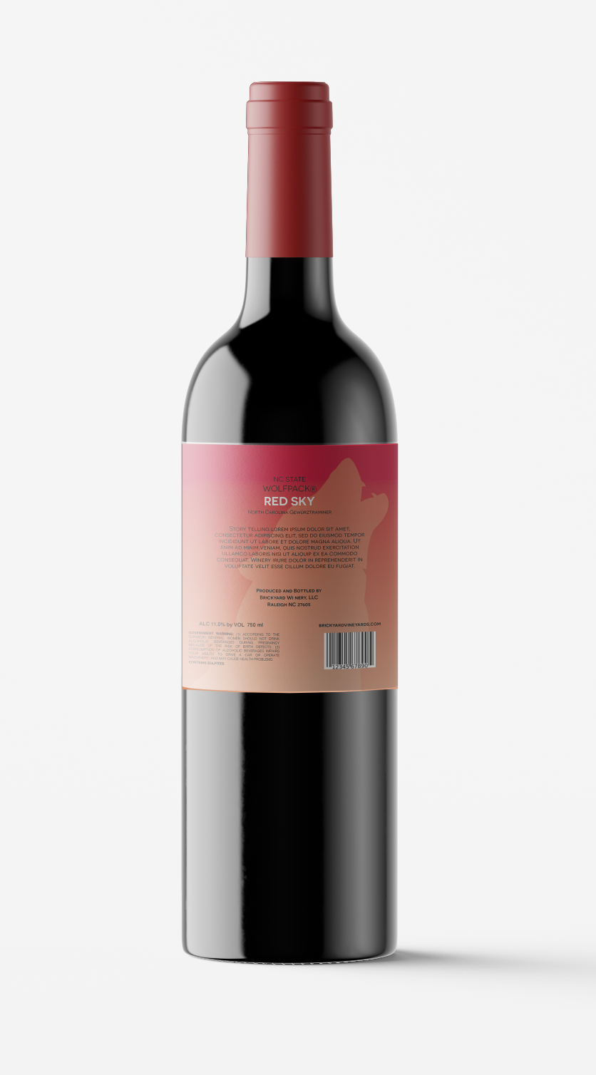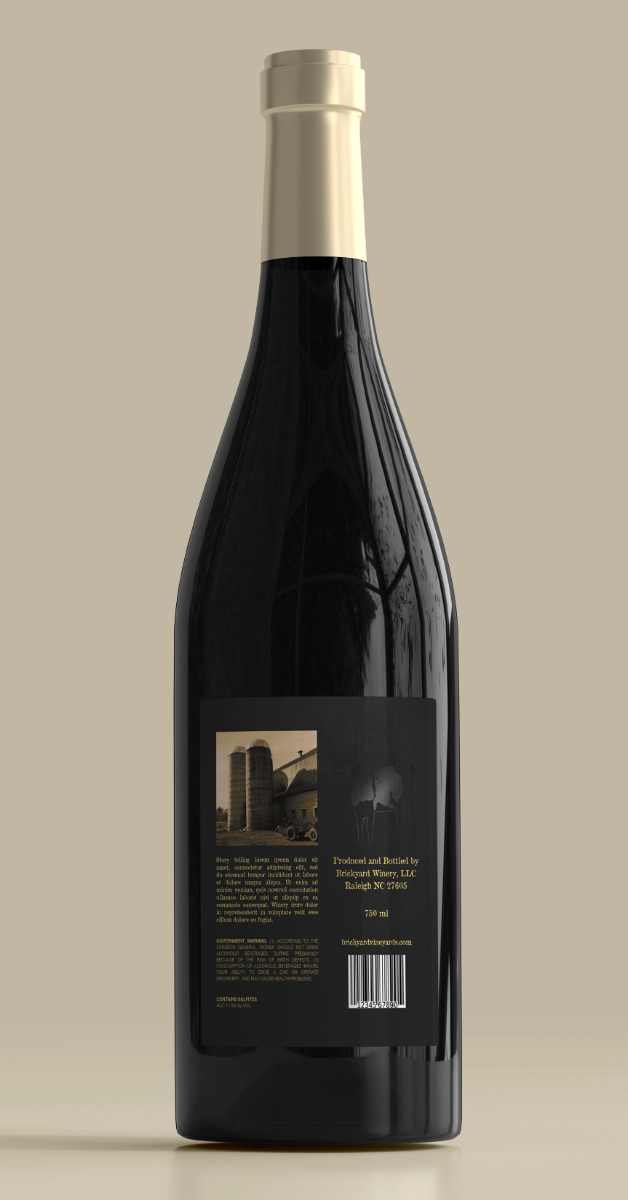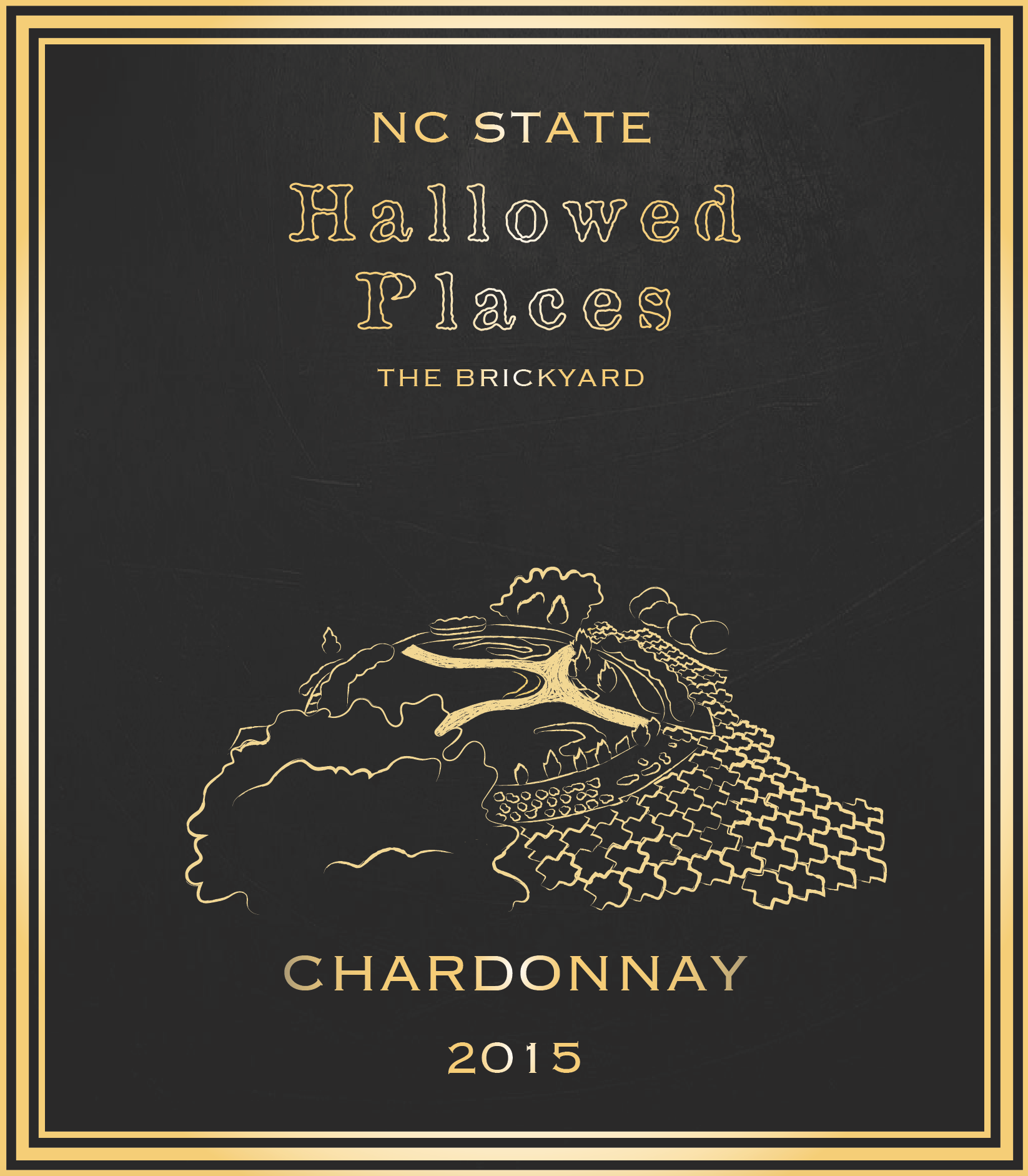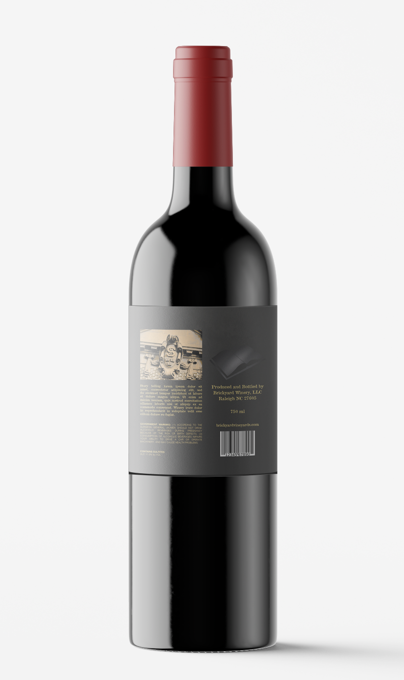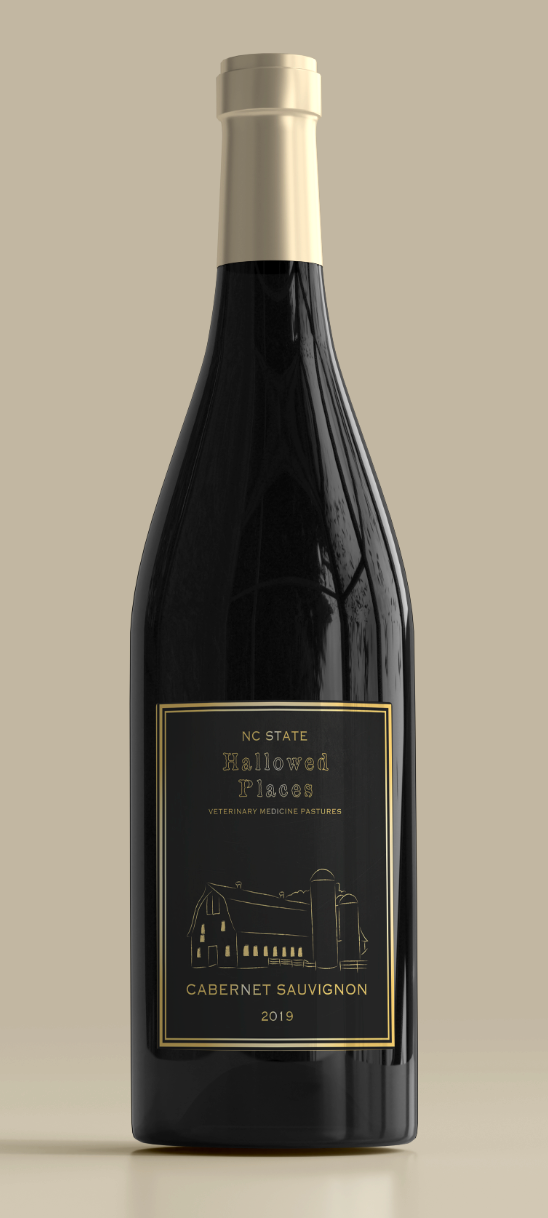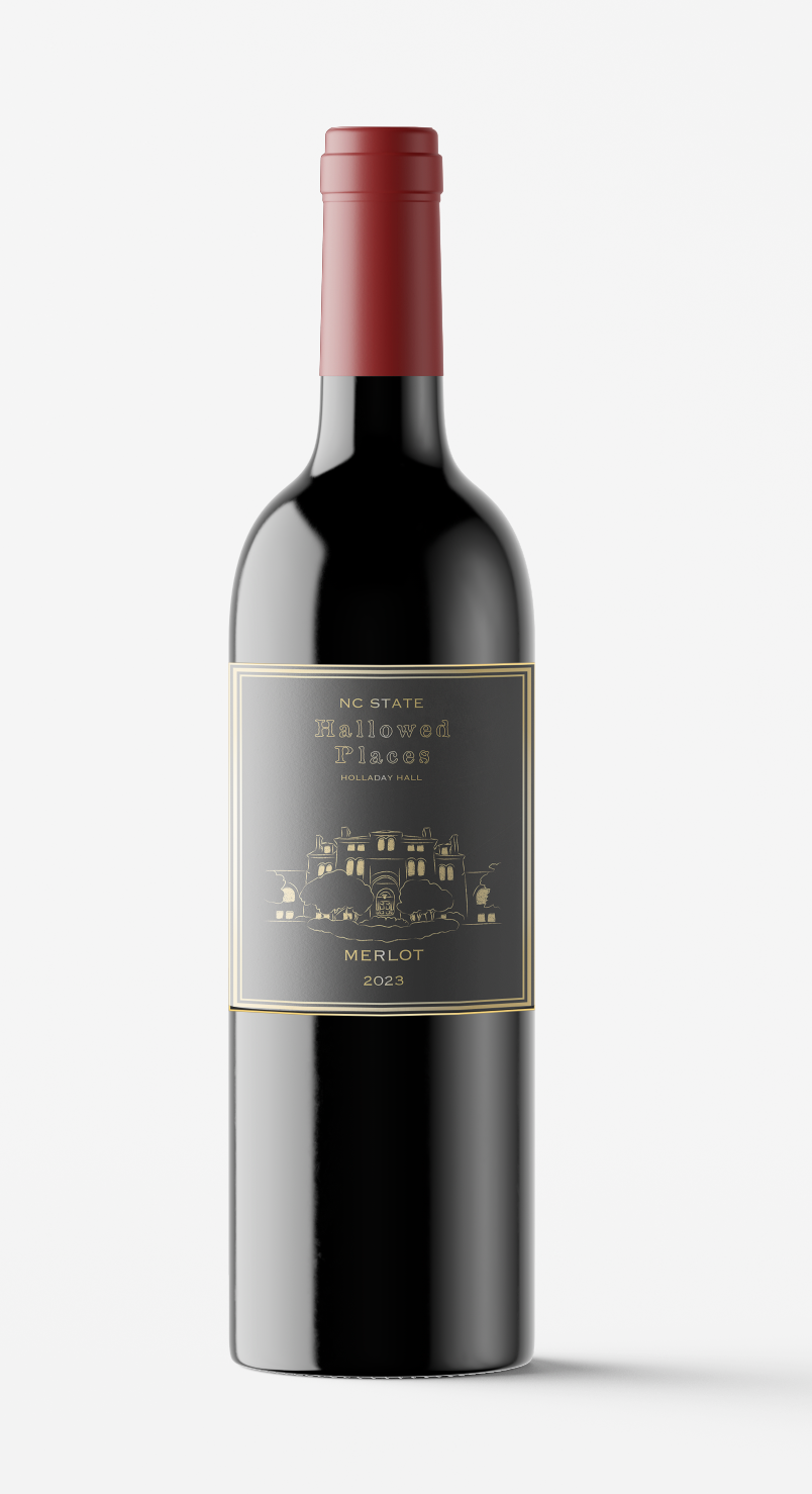 Label designs, mock upsĀ for North Carolina State University's bottled wine series (Red and White, Hallowed Places)