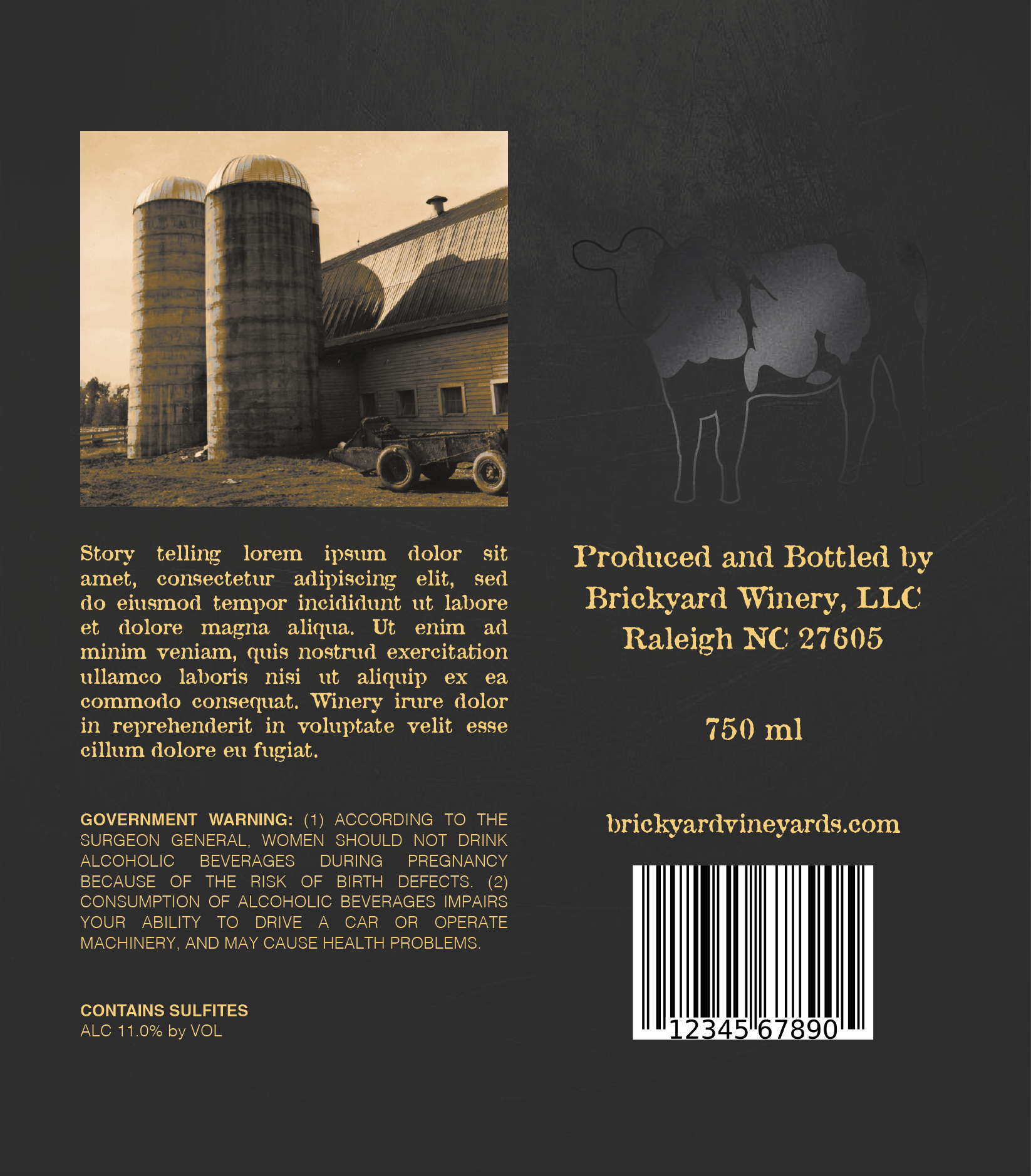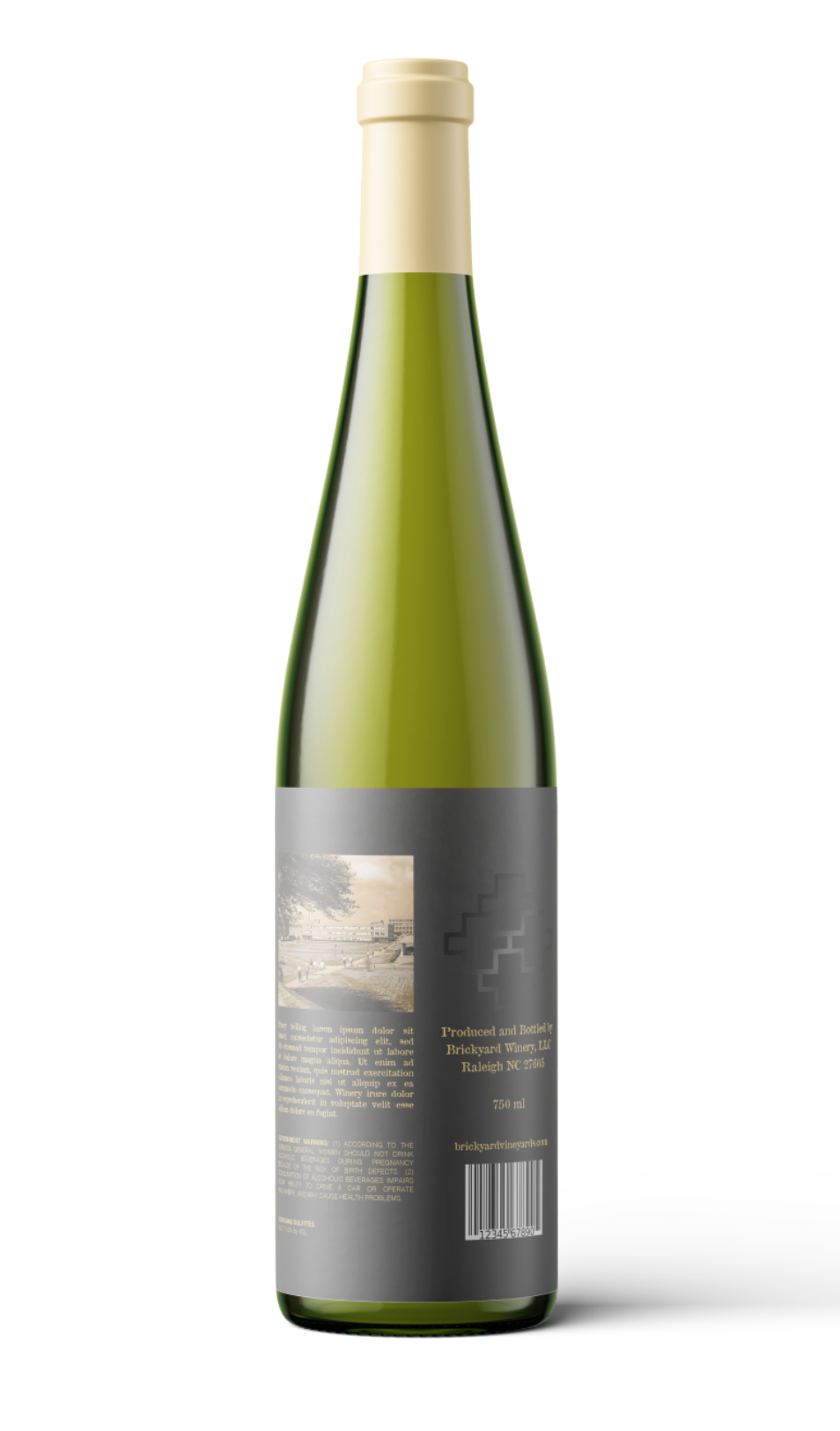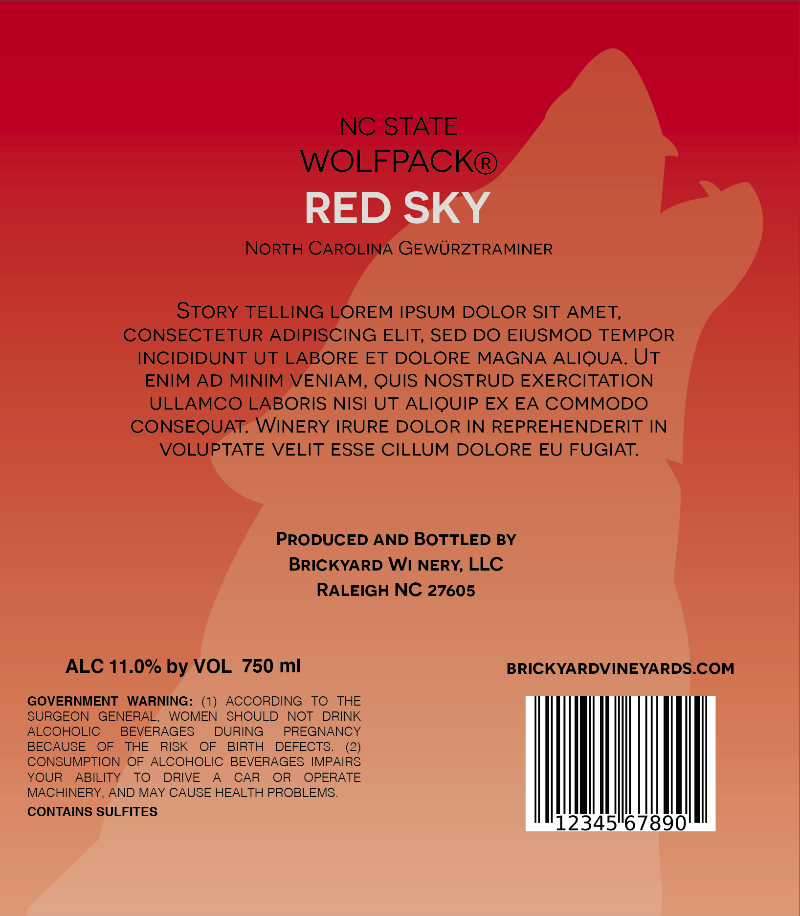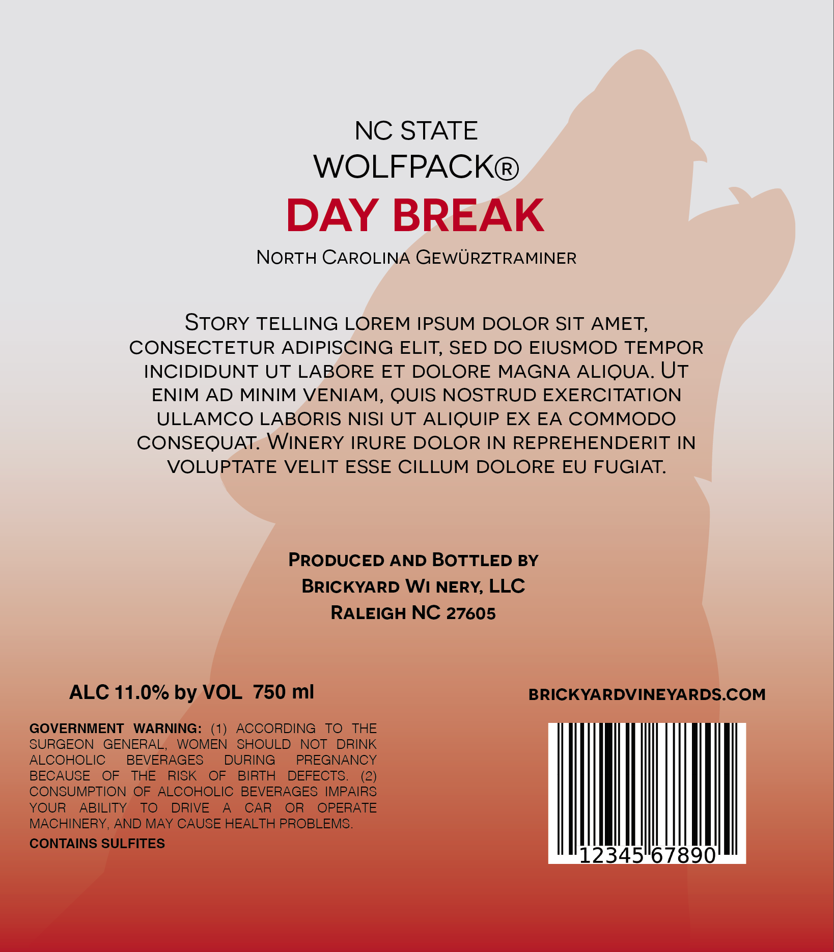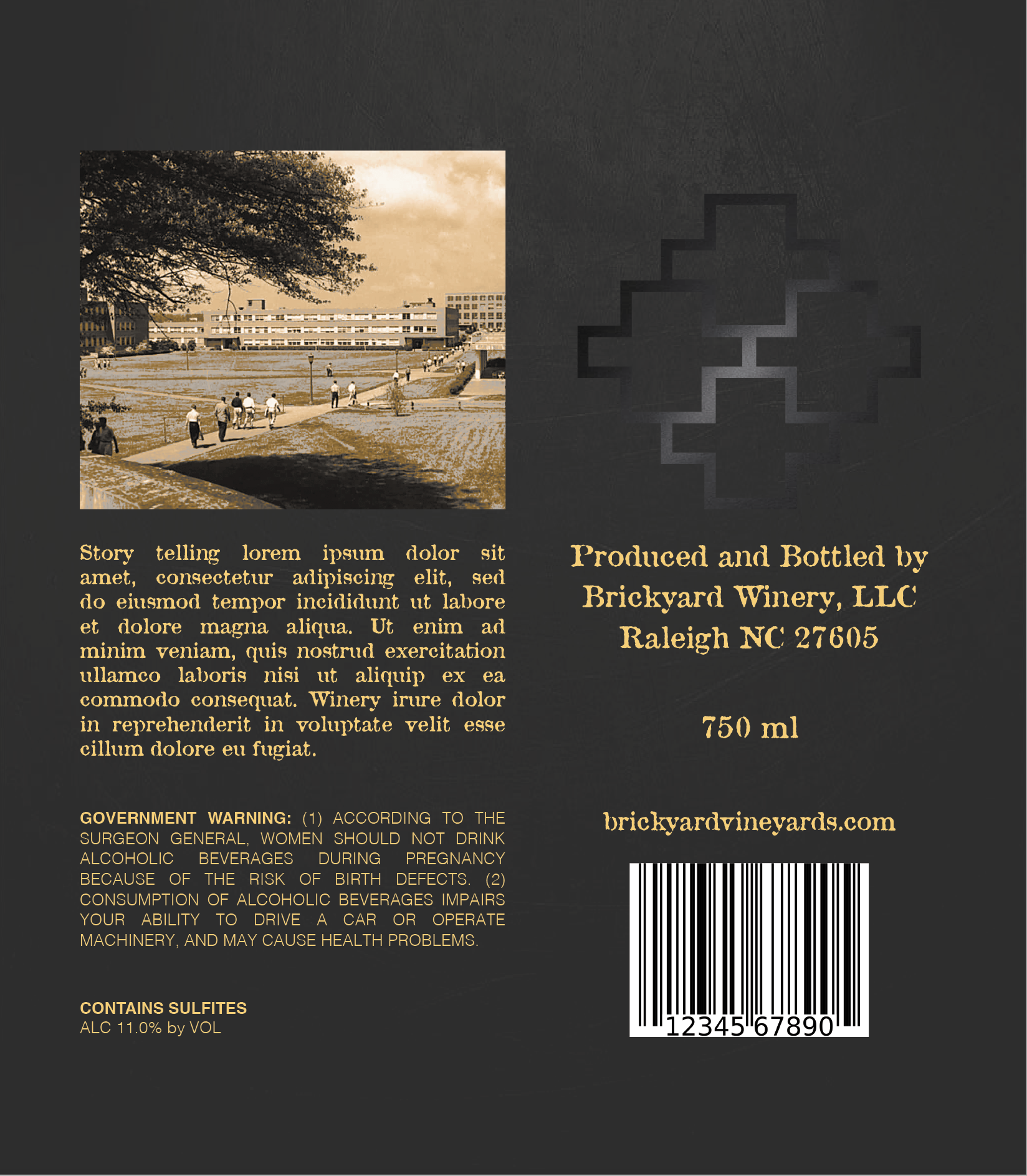 Label designs, mock upsĀ for North Carolina State University's bottled wine series (Red and White, Hallowed Places)