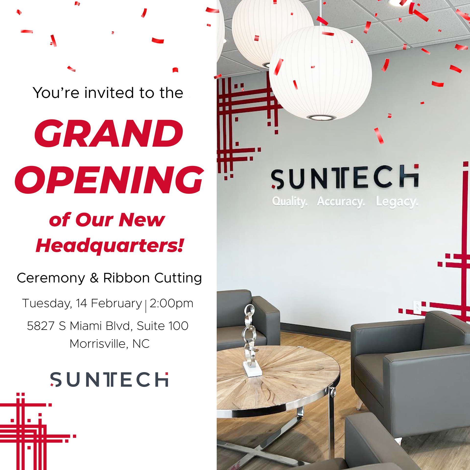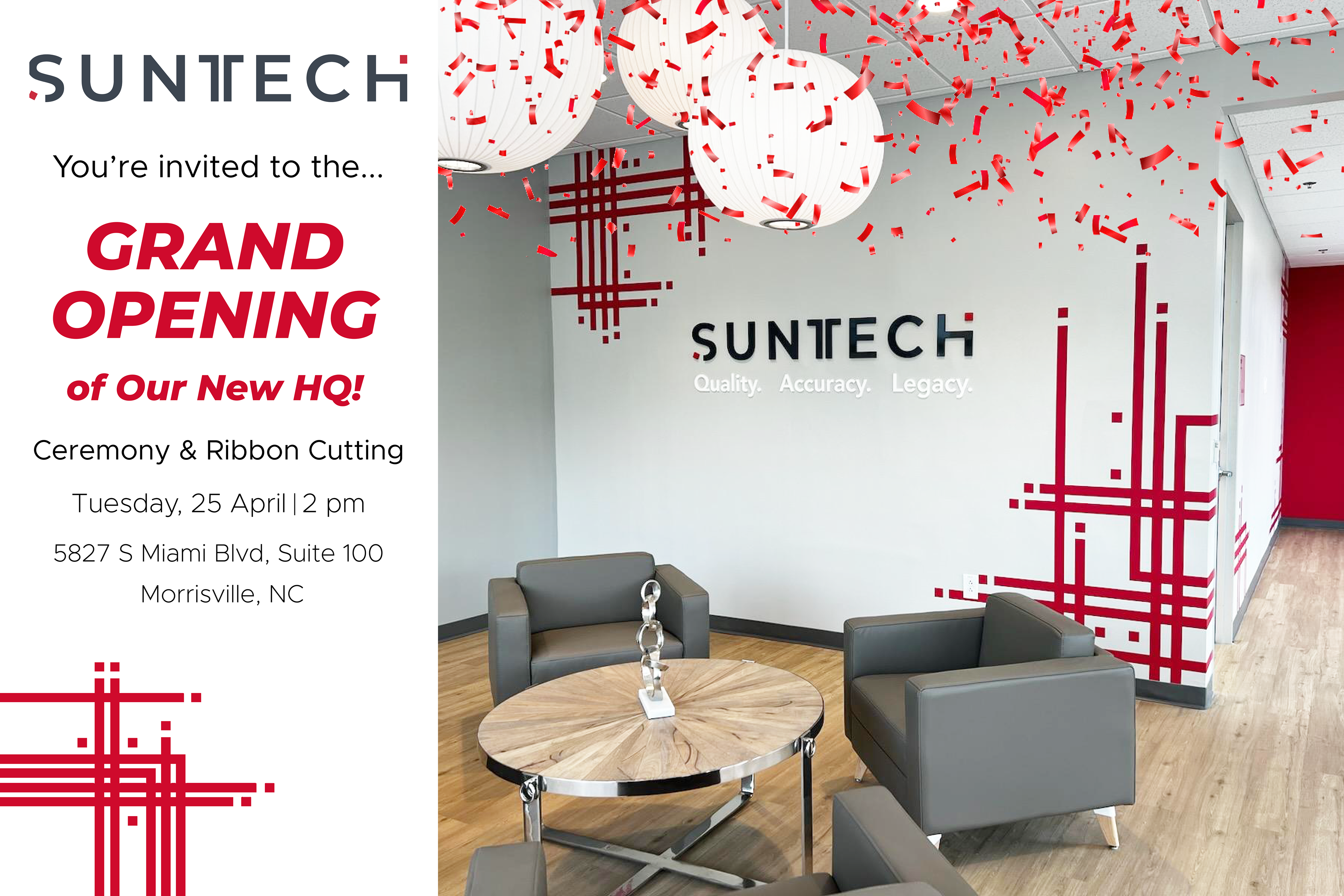 Promotional invitationsĀ for the grand opening of Suntech Medical's new building facility